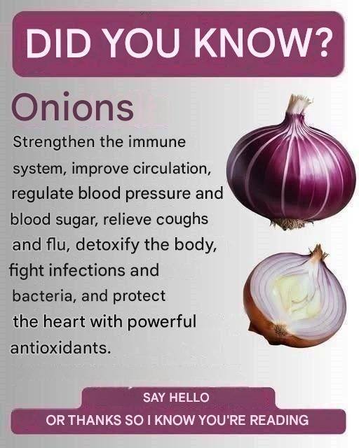 Onions are a nutrient-rich, heart-friendly, immune-supporting food that can benefit overall health when eaten regularly as part of a balanced diet.